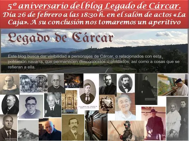 El Ayuntamiento de Cárcar se complace en invitar a los vecinos y vecinas al 5º aniversario del blog Legado de Cárcar, un espacio dedicado a la memoria histórica y la difusión de personajes y hechos relevantes de nuestro municipio.